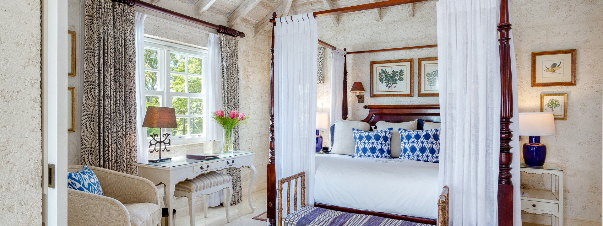 The five Luxury Plantation Suites are located on the second floor and consist of a bedroom with four poster or canopied bed, spacious living room with TV, dressing area and a large bathroom with a walk-in-shower and separate tub, all air-conditioned. A large covered terrace is complete with complimentary starter pack open sundeck and a plunge pool. The Plantation Suites all have seaviews and can accommodate two adults. Children under the age of 12 are not permitted.